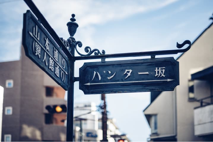 ‘Hunter-zaka’ hill street is named after Mr. E.H. Hunter, a businessman who built and lived in a Japanese ‘Ijinkan’ (foreigner house) at the top with his wife, Aiko.