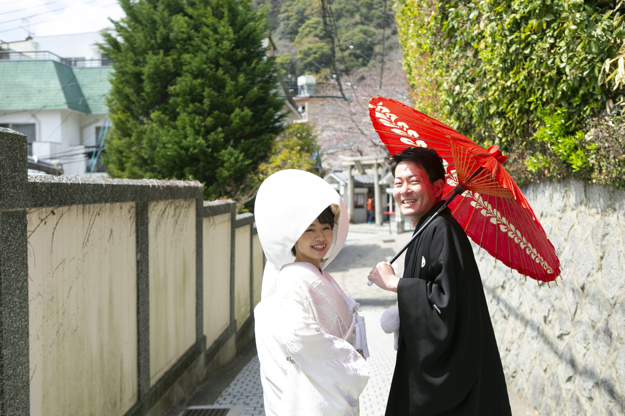 『夢見草』が映える、良く晴れた日たくさんの始まりとなる季節に挙式をされたお2人。