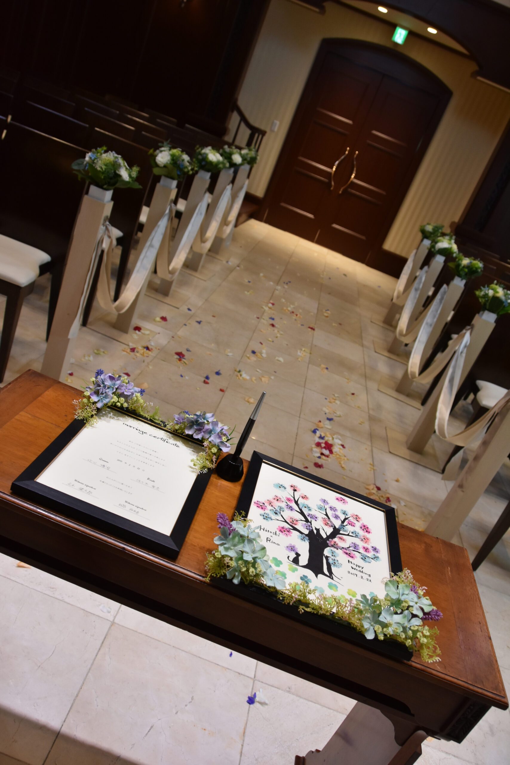 お花と猫ちゃんがテーマだったお二人のご結婚式。チャペルや会場内にはもちろん、皆様のお控室にもお花や素敵な絵画が飾られておりました。