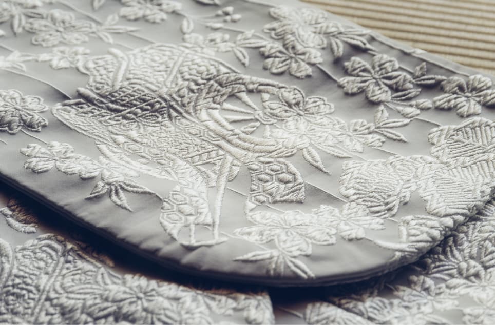 ていねいに広げられた白無垢。凛とした白が、