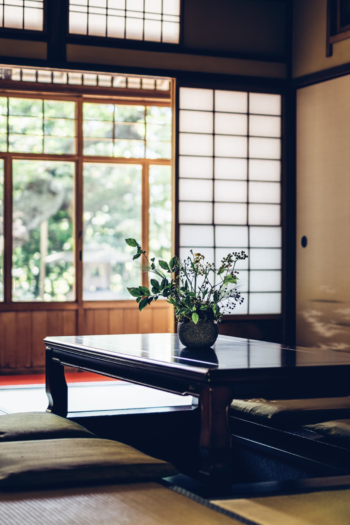 The reception area recalls the Meiji and Taisho years, reminiscent of glamorous past gatherings. An elegant Western-style room serves as a waiting area for guests while Japanese rooms connected by a verandah accommodate both families.