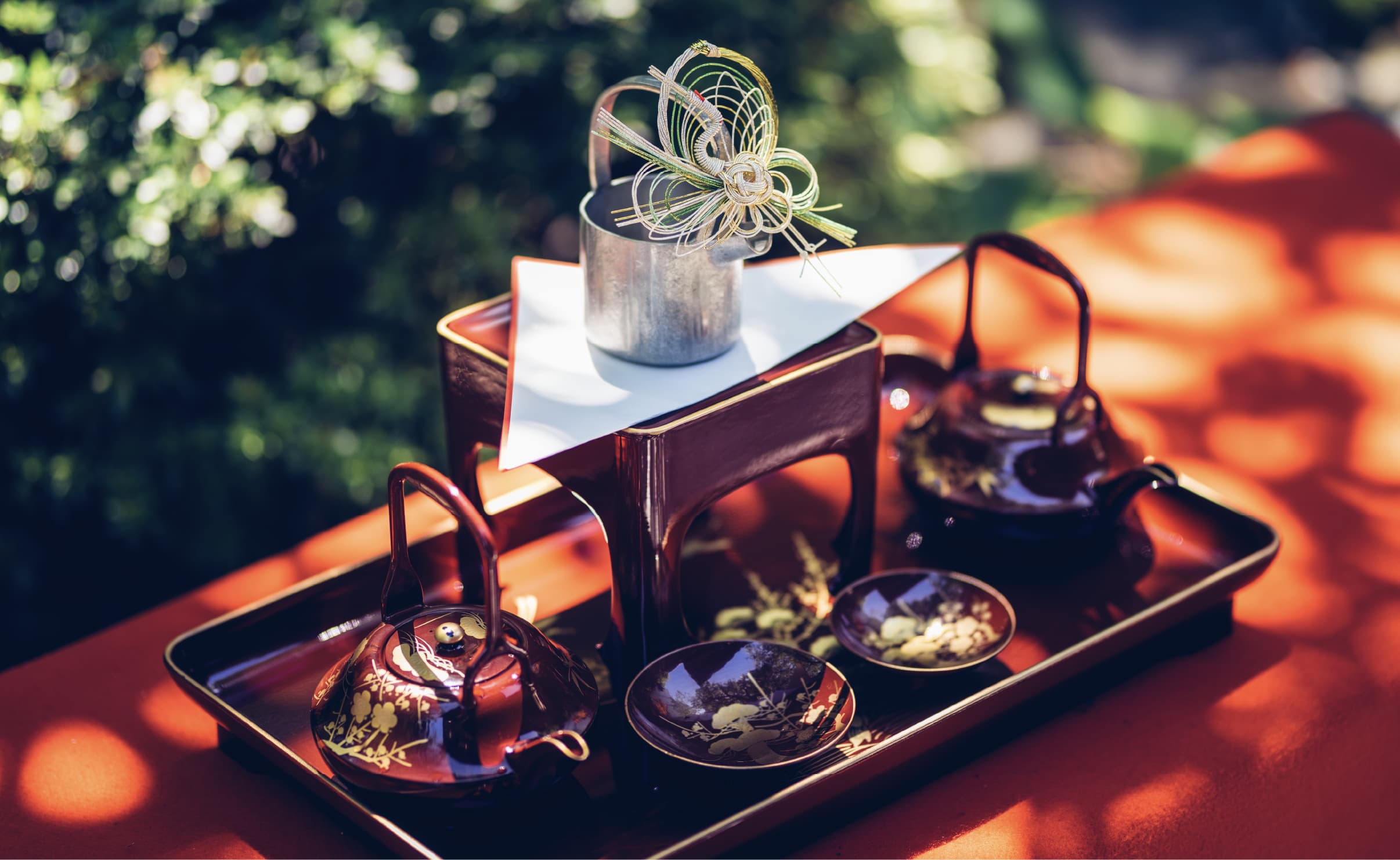 Adorned in wedding gown, led by the hand into the light: The seasons may change but the dignified presence of the bride is unchanging and timeless.The ‘Mizuawase’ (water mixing) Ceremony is performed to signify the combining of two houses to create a new family.